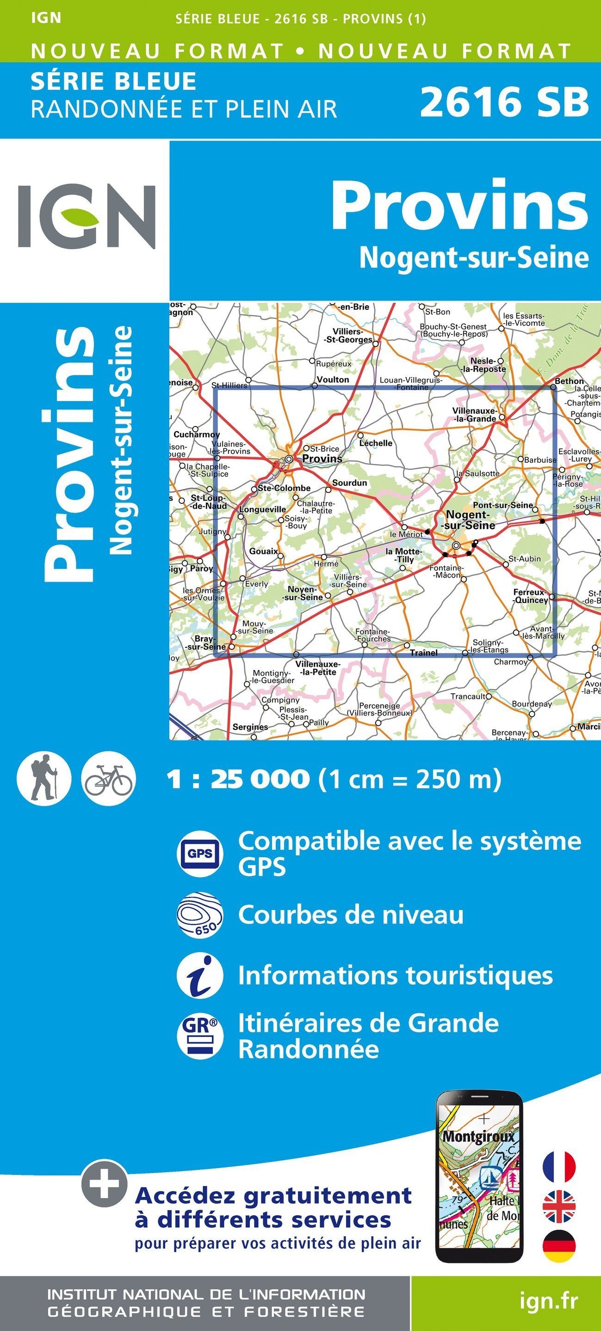 Hiking map No. 2616 - Provins, Nogent - sur - Seine | IGN - Blue Series