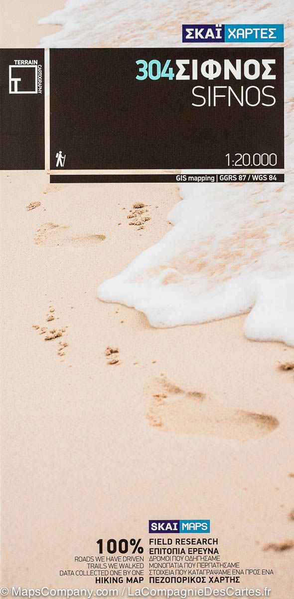 Waterproof topographic map of Sifnos Island (Greece) published by Chair Cartography. Level curves, indication of hiking trails. All the names are in Greek and Latin. Tourist information (beaches, points of interest, maritime links ...) and selection of hikes with duration and distance (on the back). Multilingual map (French, English, German and Greek). Detailed map protected by a laminated case. Scale 1 / 20,000.