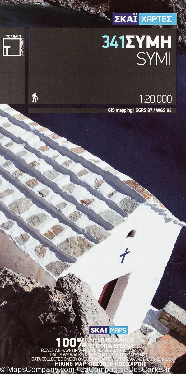 Waterproof topographic map of Symi Island (Greece) published by Cartography. Level curves, indication of hiking trails. All the names are in Greek and Latin. Tourist information (beaches, points of interest, maritime links ...) and selection of hikes with duration and distance (on the back). Multilingual map (French, English, German and Greek). Detailed map protected by a laminated case. Scale 1 / 20,000.