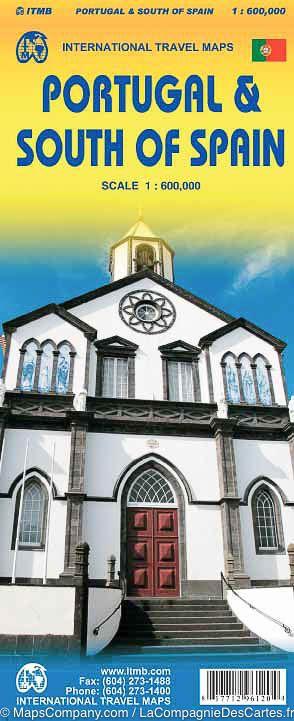 Road map of Portugal and southern Spain published by ITM. One side is devoted to Portugal and the other side of the map includes the south coast of Spain, from Cadiz to Valencia east and including Granada, Almeria, Cartagena and Alicante. It is an ideal map for traveling on the Spanish coast, with the possibility of going indoors to visit Córdoba, Seville, and Albacete and also make an incursion to Portugal to the Algarve.