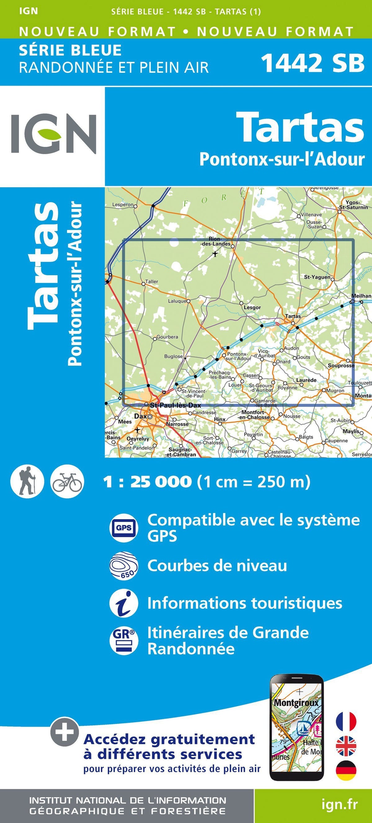 Carte de randonnée n° 1442 - Tartas, Pontonx-sur-l'Adour | IGN - Série Bleue carte de randonnée IGN Default Title