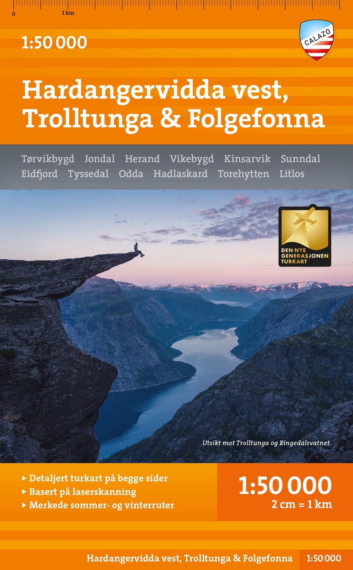 Hiking map - Hardangervidda vest, Trolltunga & Folgefonna (Norway) | Calazo - 1/50,000
