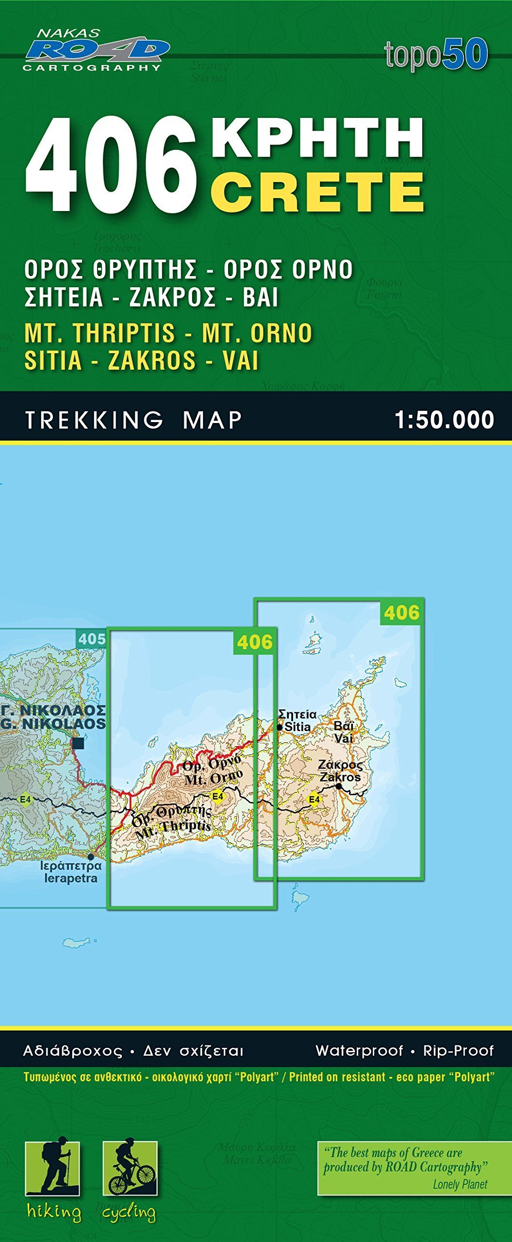 Hiking map No. 406 - Crete: Mt. Thriptis, Mt. Orno, Sitia, Zakros, Vai | Road Editions
