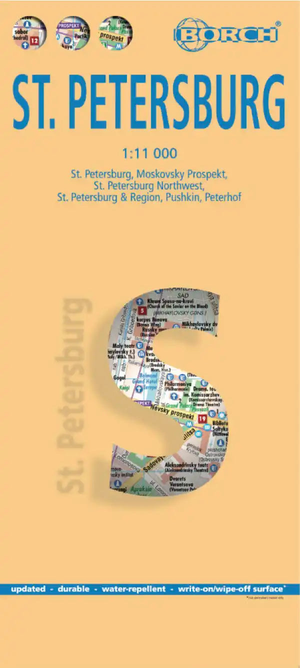 Detailed Plan of Saint Petersburg published by Borch Map entirely Laminated strong>, which covers the city of Saint Petersburg in Russia.