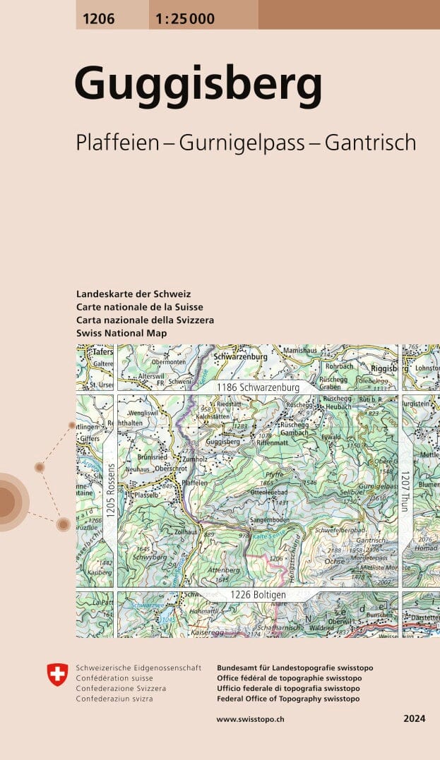 Topographic map of the Guggisberg region for hikers, mountaineers, urban planners, individualists and lovers of discoveries.