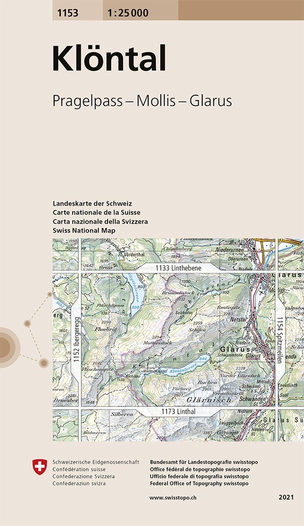 Topographic map No. 1153 - Klontal (Switzerland) | Swisstopo - 1/25 000
