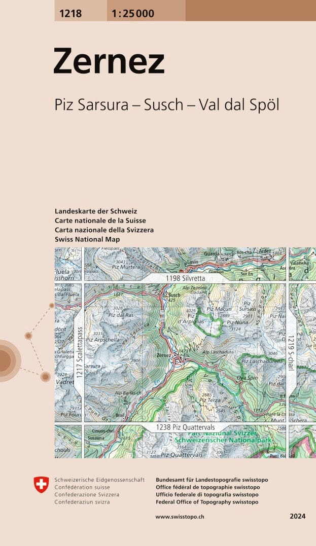 Topographic map No. 1218 - Zernez (Switzerland) | Swisstopo - 1/25 000