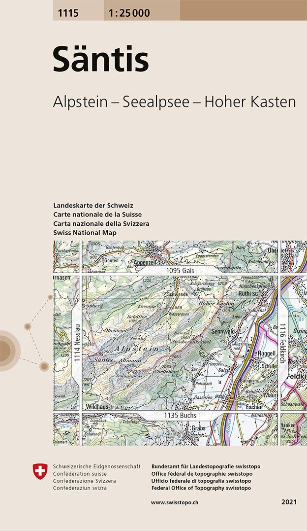 Topographic map No. 1115 - Santis (Switzerland) | Swisstopo - 1/25 000
