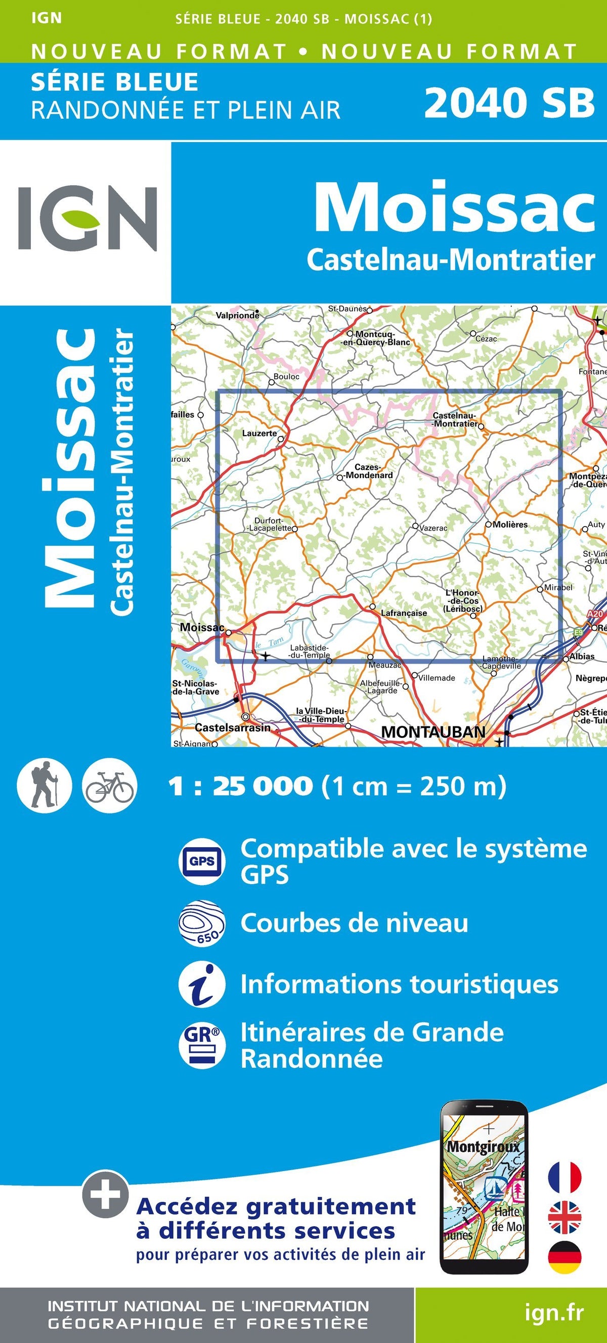 Carte de randonnée n° 2040 - Moissac, Castelnau, Montralier | IGN - Série Bleue carte de randonnée IGN Default Title