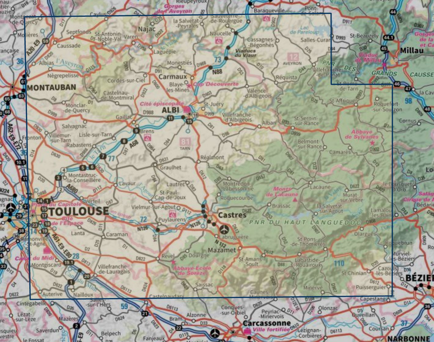 Carte touristique TOP 100 D81 - Tarn : Albi, Castres, PNR Haut-Languedoc | IGN