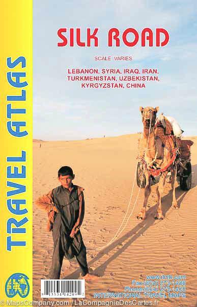 Atlas de poche de la Route de la Soie édité par ITM. Cet atlas routier s'étend de l'Europe à la Chine, en passant par les pays d'Asie Centrale. Points d'intérêt et parcs nationaux indiqués. Nombreux plans de villes inclus dont Bagdad, Damas, Samarcande, Tashkent... Index des villes. Peut s'utiliser indifféremment d'est en ouest ou d'ouest en est. 73 pages.