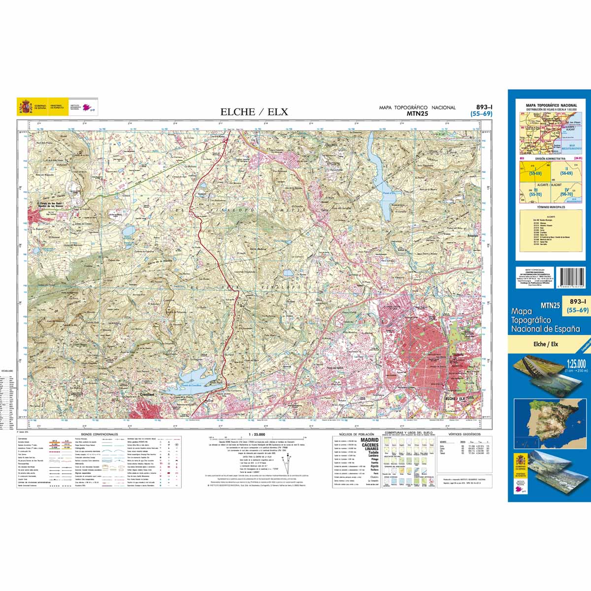 Carte topographique de l'Espagne n° 0893.1 - Elche / Elx | CNIG - 1/25 000