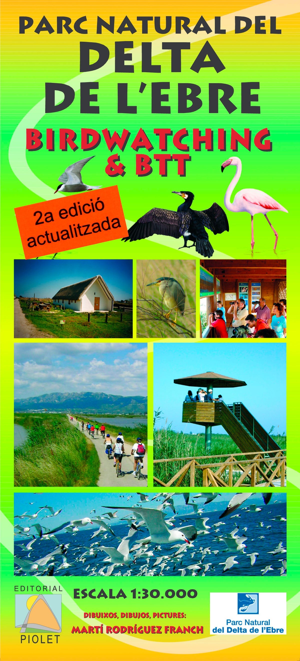 Carte de randonnée qui peut également être utilisée comme carte cycliste (avec quelques itinéraires VTT) et carte routière pour découvrir le delta de l'Ebre et trouver de bons endroits pour observer les oiseaux. Avec de nombreux détails, toutes les routes dures et non pavées, l'accessibilité et les installations disponibles telles que les cabanes d'observation et les élévations.