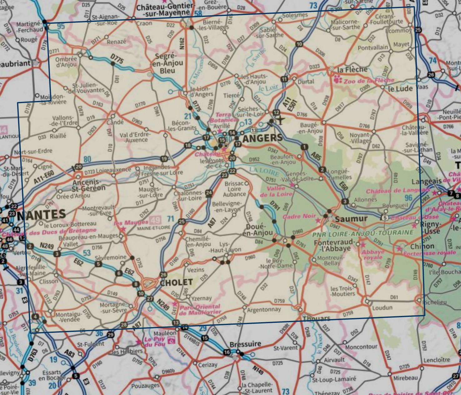Carte touristique TOP 100 D49 - Maine-et-Loire : Angers, Saumur, Cholet, Châteaux de la Loire | IGN
