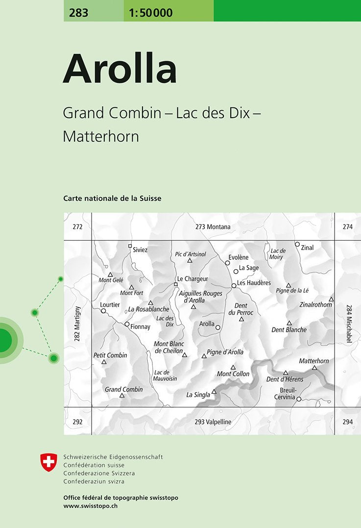 Carte topographique de la région de Arolla éditée par Swisstopo.