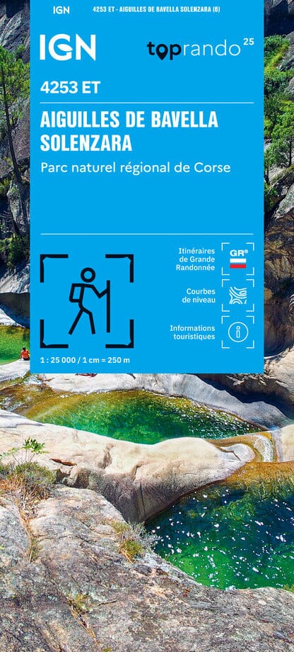 Carte topographique IGN TOP 25 n° 4253ET des Aiguilles de Bavella, Solenzara, et du PNR de Corse éditée par IGN.
