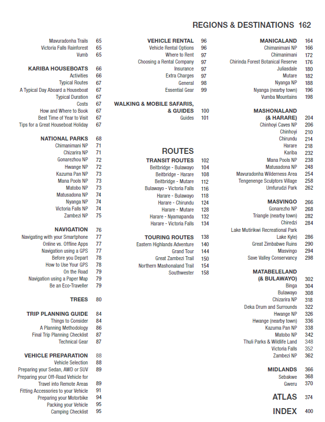 Cartographie précise : Des cartes faciles à lire et exactes indiquent les routes principales, les sites touristiques et les points d’intérêt. Une section atlas couvre tout le Zimbabwe à l’échelle 1:1 000 000.