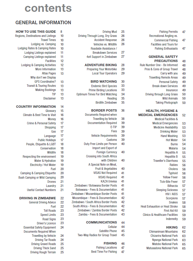 Destinations détaillées : Toutes les destinations au Zimbabwe sont décrites en détail, avec les infrastructures, services et activités disponibles.