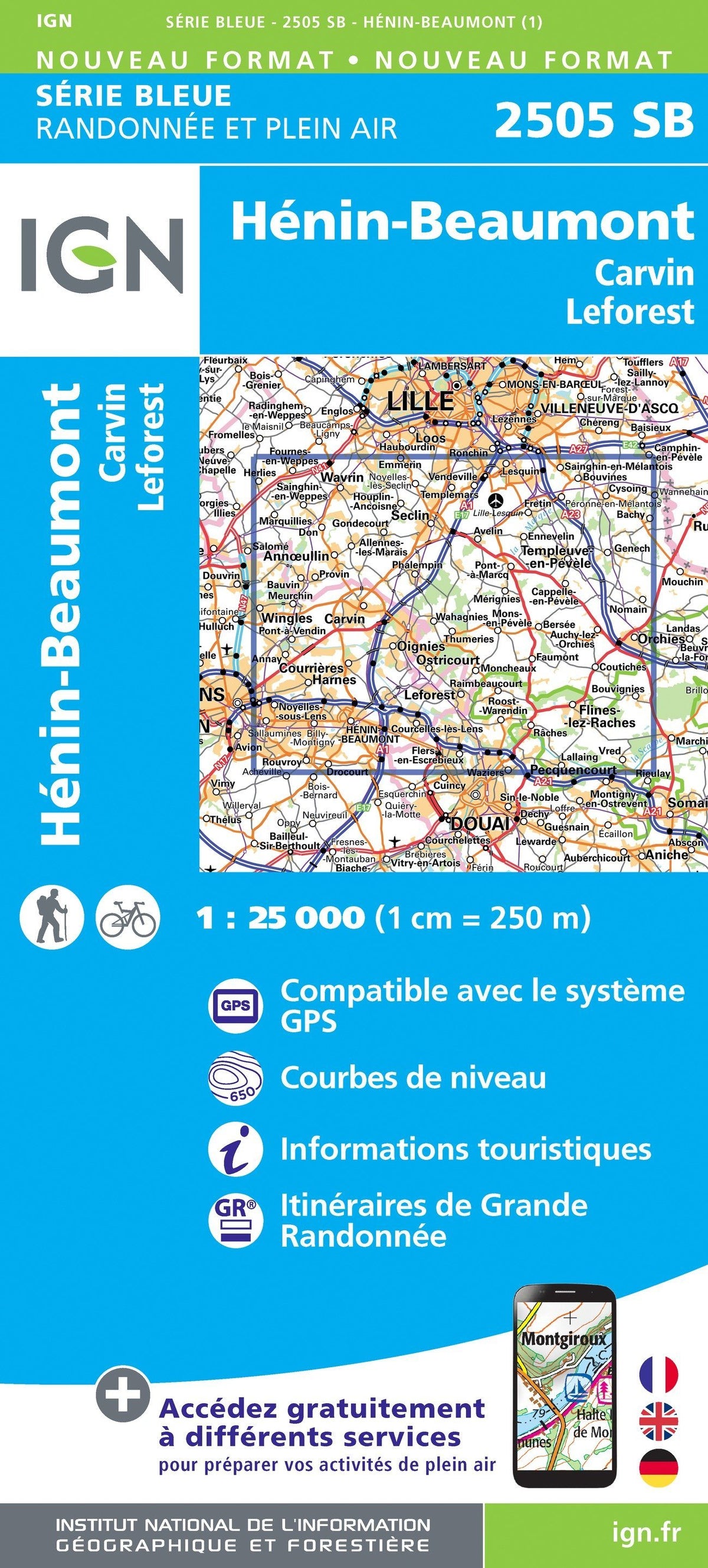 Carte de randonnée n° 2505 - Hénin-Beaumont, Carvin, Leforest | IGN - Série Bleue