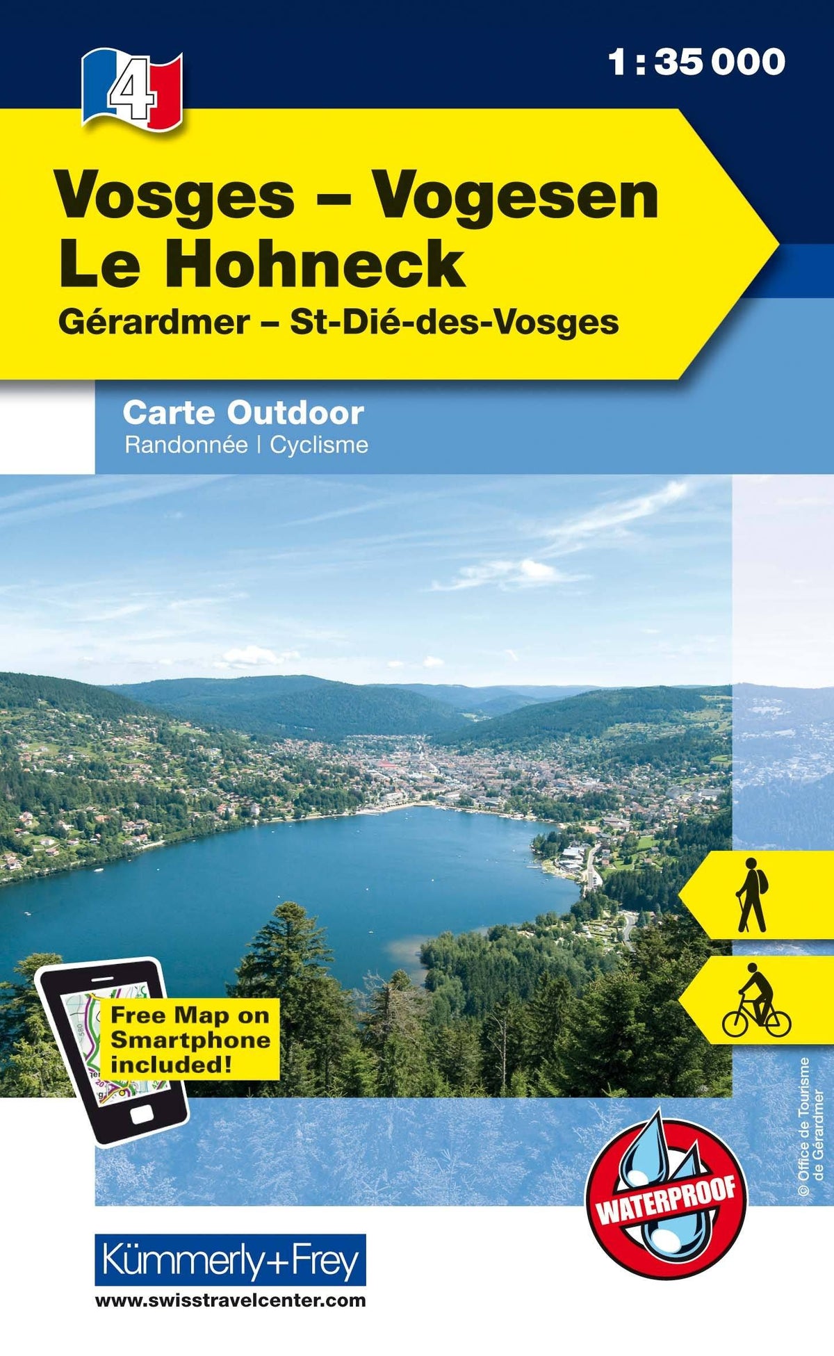 Carte de plein-air de la zone du Hohneck éditée par Kümmerly & Frey pour la randonnée à pied, à ski ou pour le cyclisme.